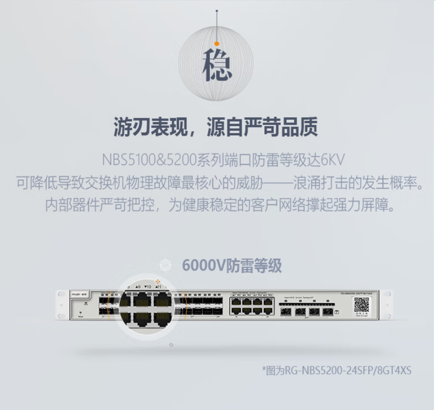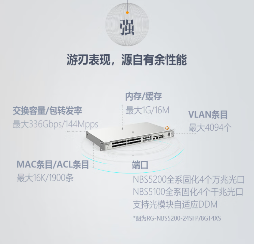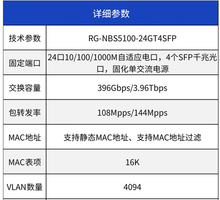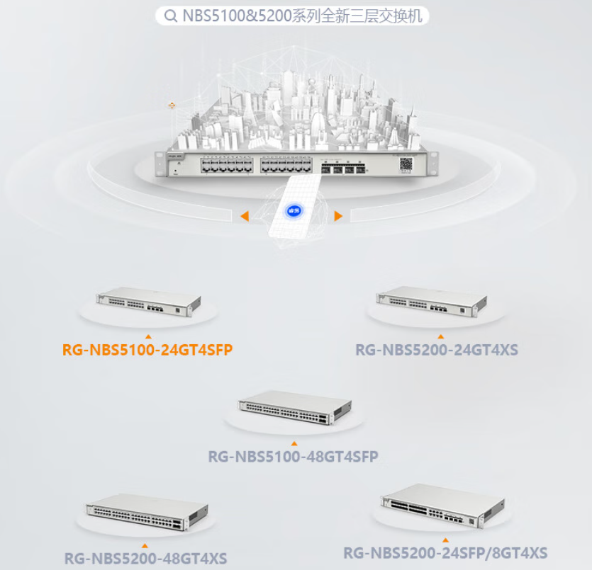 锐捷/Ruijie RG-NBS5100-24GT4SFP 以太网交换机 锐捷24口千兆交换机三层网管核心千兆光口上联 企业管理型汇聚办公园区监控组网
