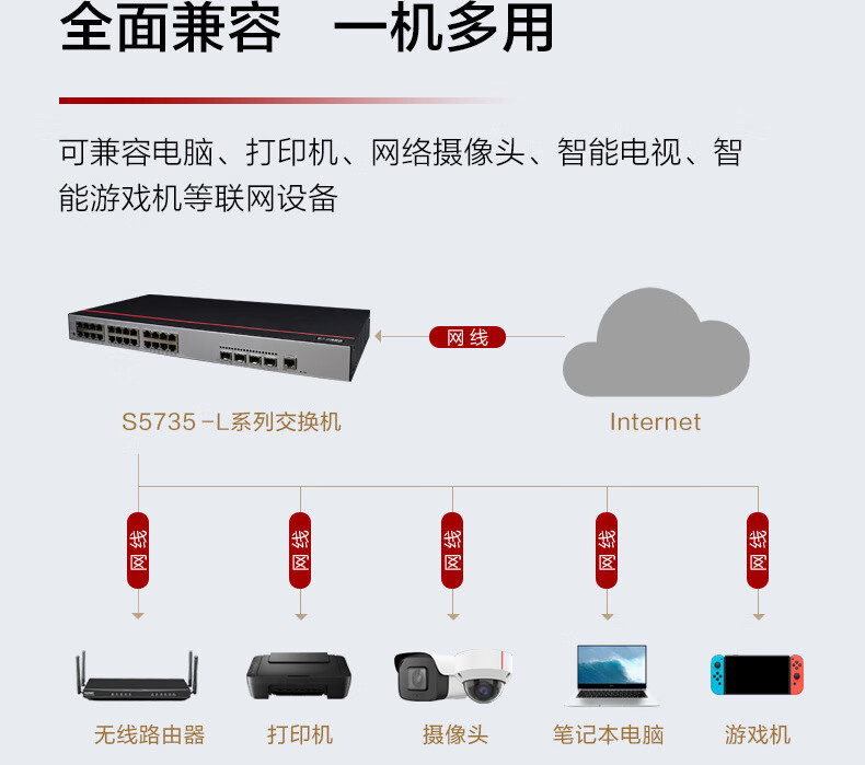 华为 S5735-L24T4S-A1 以太网交换机 24口千兆电口+4口千兆光口 企业级网络组网弱三层全管理