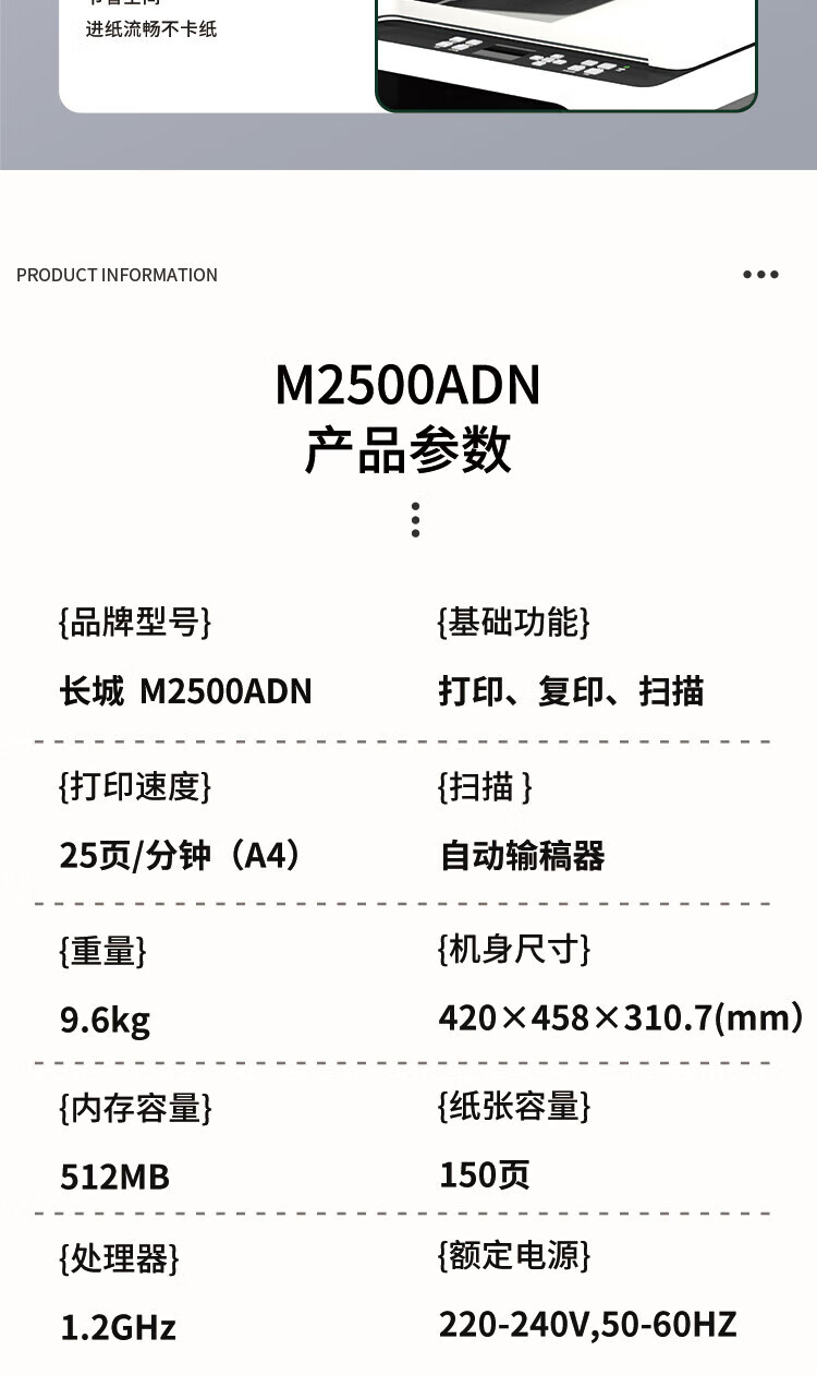 长城/Great Wall M2500ADN A4 黑白打印机 黑白激光打印复印扫描一体机 带输稿器 自动双面办公家用A4一体机 支持国产系统